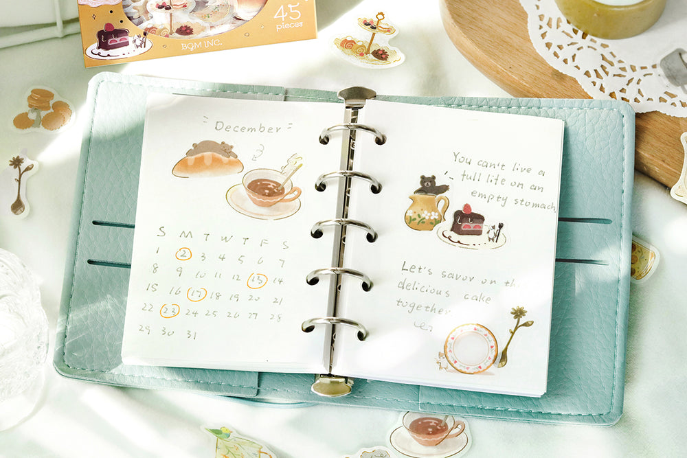 Beautiful flake seals from 'Afternoon Tea' collection. These are die cut washi stickers. A set contains 45 pieces from 15 different designs.